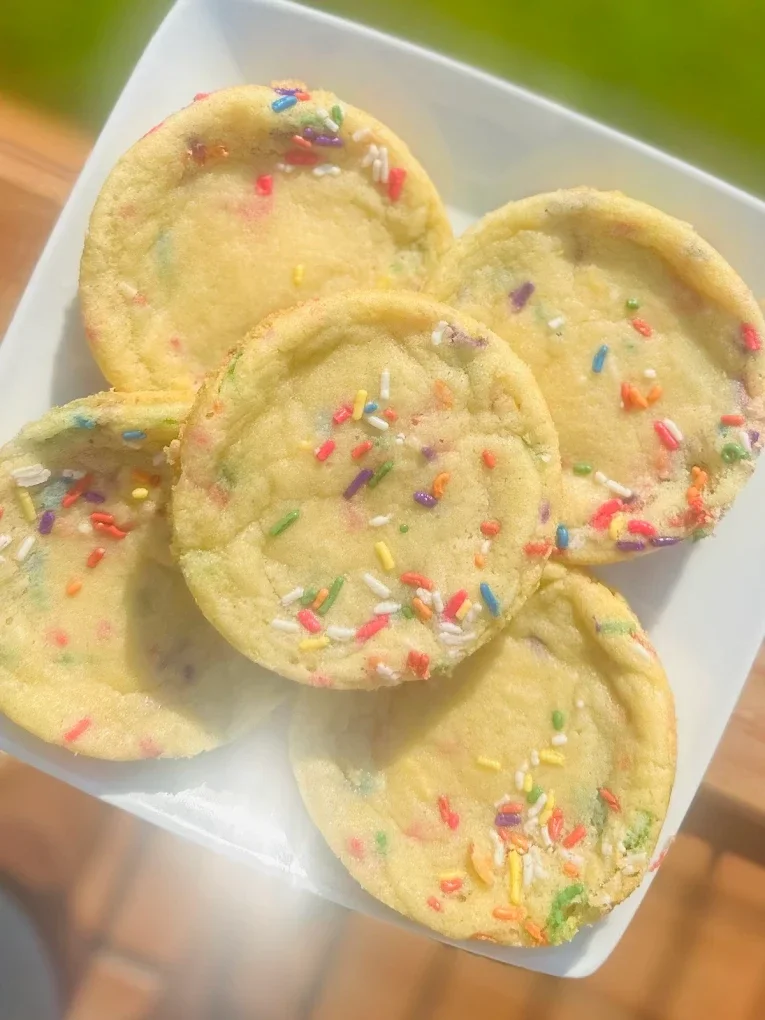 Bright, buttery, and bursting with rainbow sprinkles, our Funfetti cookies are pure joy in cookie form. Soft and chewy with a hint of vanilla cake flavor, they’re perfect for birthdays, celebrations, or just because you deserve something sweet.
